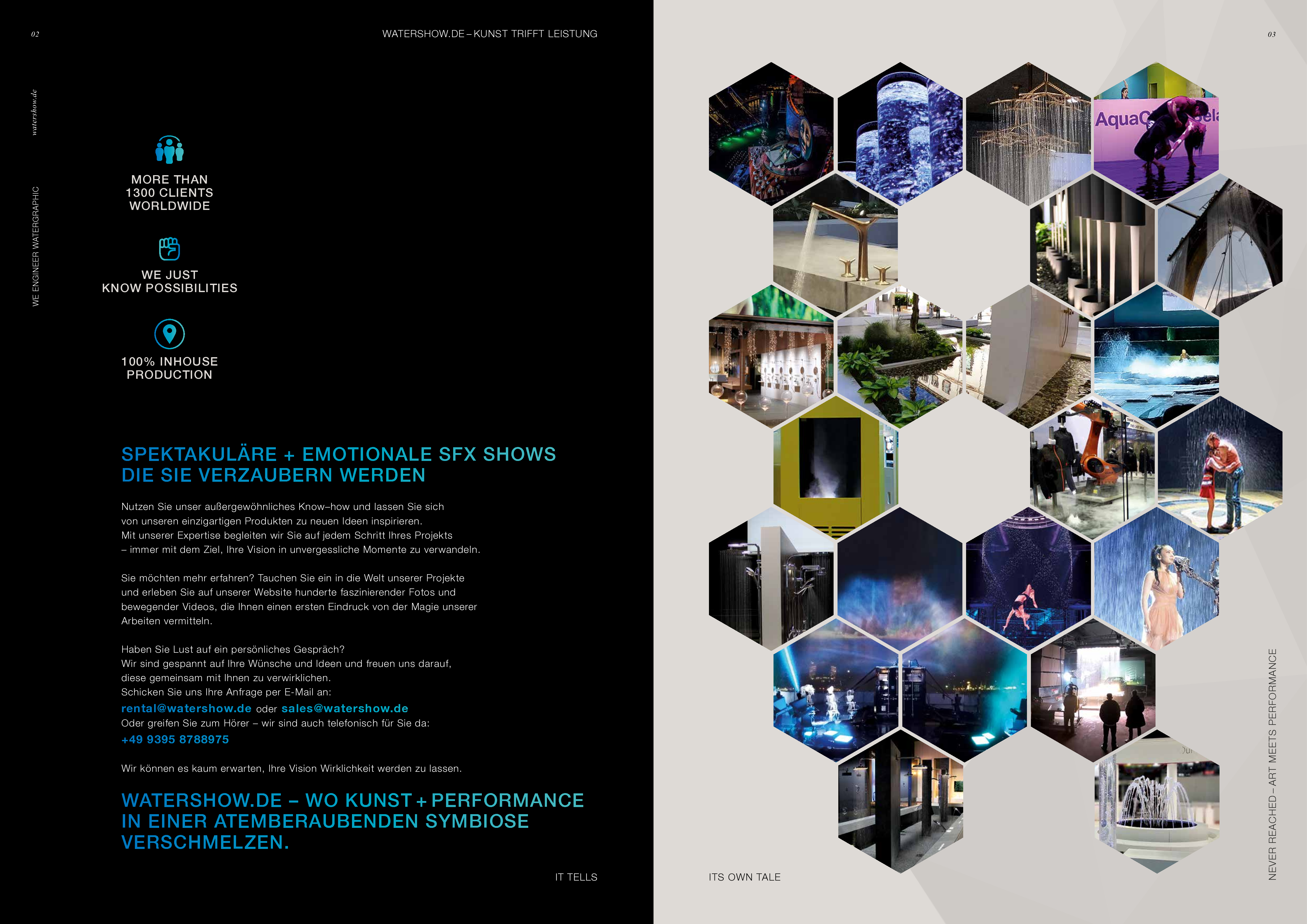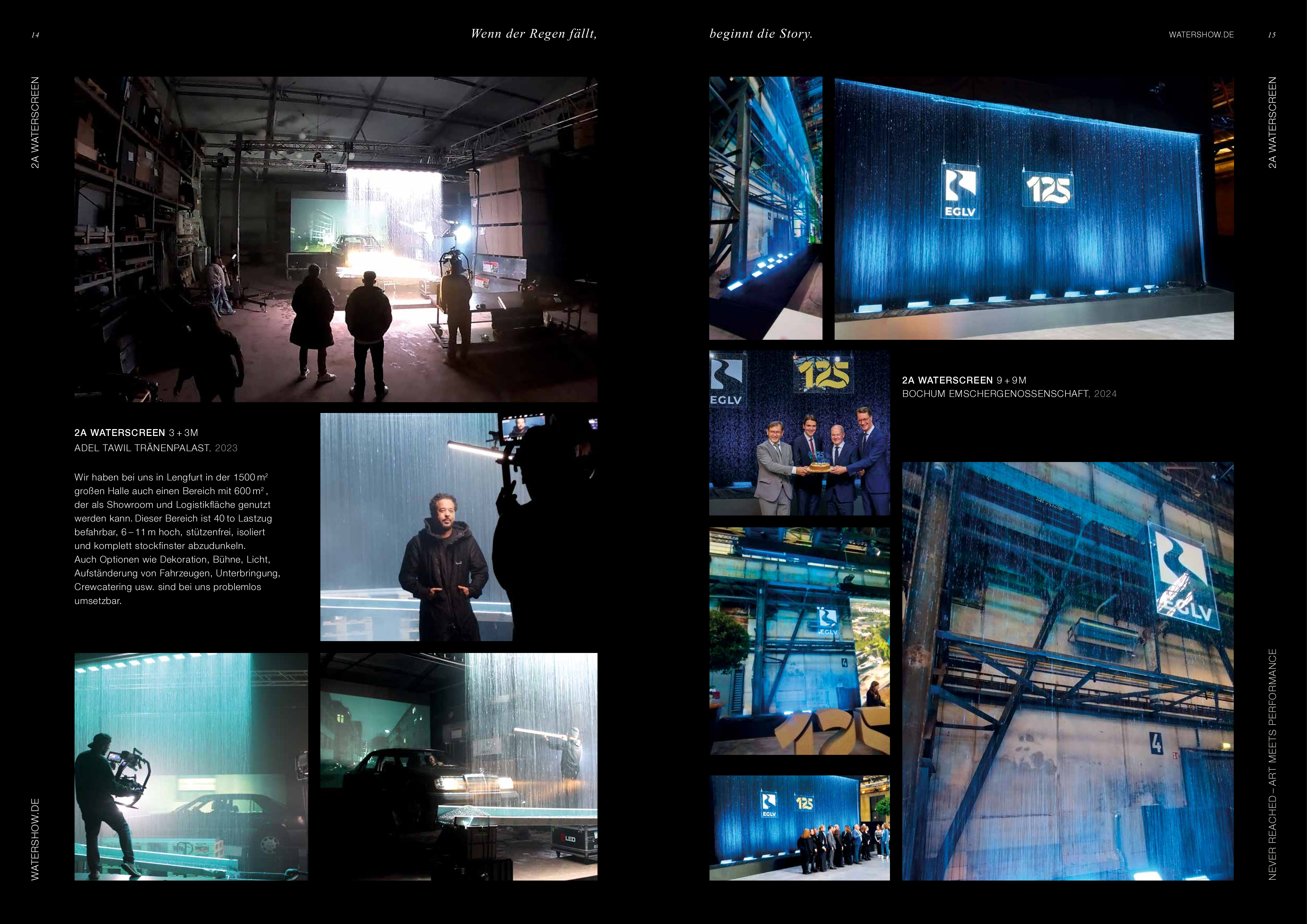 Watershow.de GmbH verwandelt Wasser in unvergessliche Erlebnisse. Von funkelnden Fontänen und eleganten Wasserwänden bis hin zu hochmodernen Wasserscreens, die Logos und Bilder mit fallenden Tropfen schreiben. Jede Show ist ein einzigartiges Highlight. Mit individuellen Lösungen, perfekter Technik und beeindruckender visueller Wirkung lässt Watershow.de Marken erstrahlen und Events unvergesslich werden.
